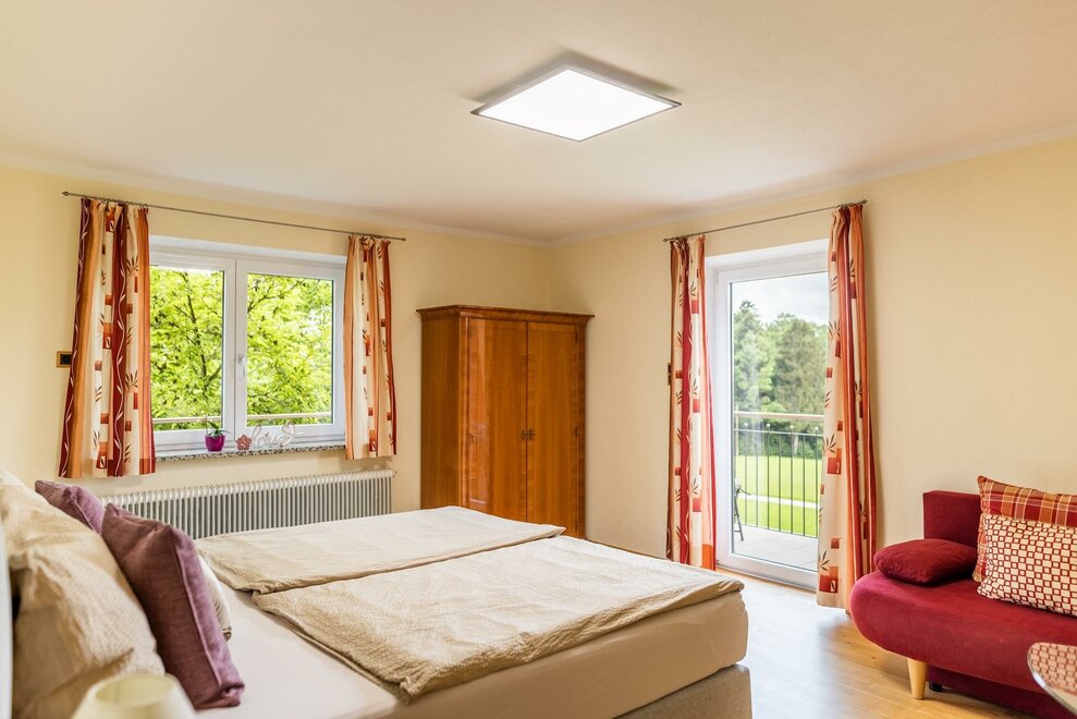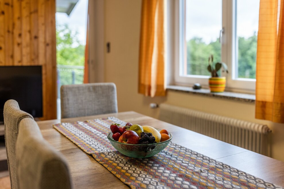 The appartement is on the first floor of our house. It has 3 sleeping rooms, 1 fully equiped kitchen with a seperate dining room and 1 bathroom with toilette. Also there is a balcony with a marvellous view to the nature. Using bed clothes and towels are included in the costs. Check in can be after 14:00 and check out is until 10:00.