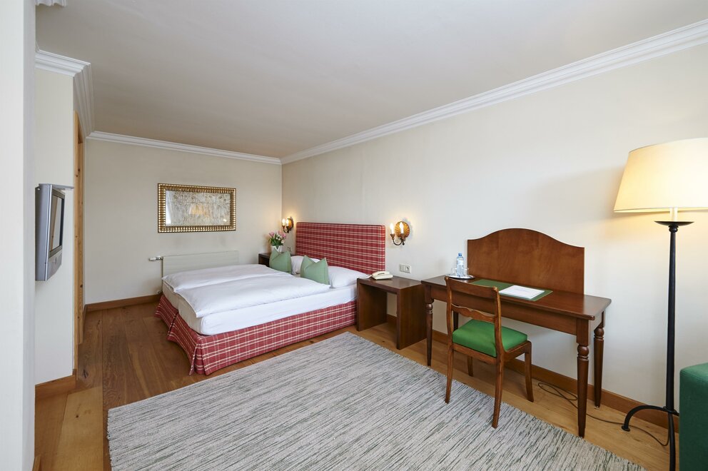 Le 35 camere accoglienti combinano il comfort moderno con il calore rurale. Tutte le camere dispongono di: Bagno/doccia, WC, TV satellitare, telefono con selezione diretta (tutte le camere con collegamento modem), radio. Le nostre camere con vista sul giardino, in posizione tranquilla, sono inoltre dotate di balcone. Camere non fumatori su richiesta.