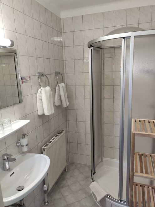 Nasze 2 pokoje dwuosobowe są wyposażone w łazienkę (prysznic lub wannę), WC, suszarkę do włosów, telewizję satelitarną, radio i telefon.